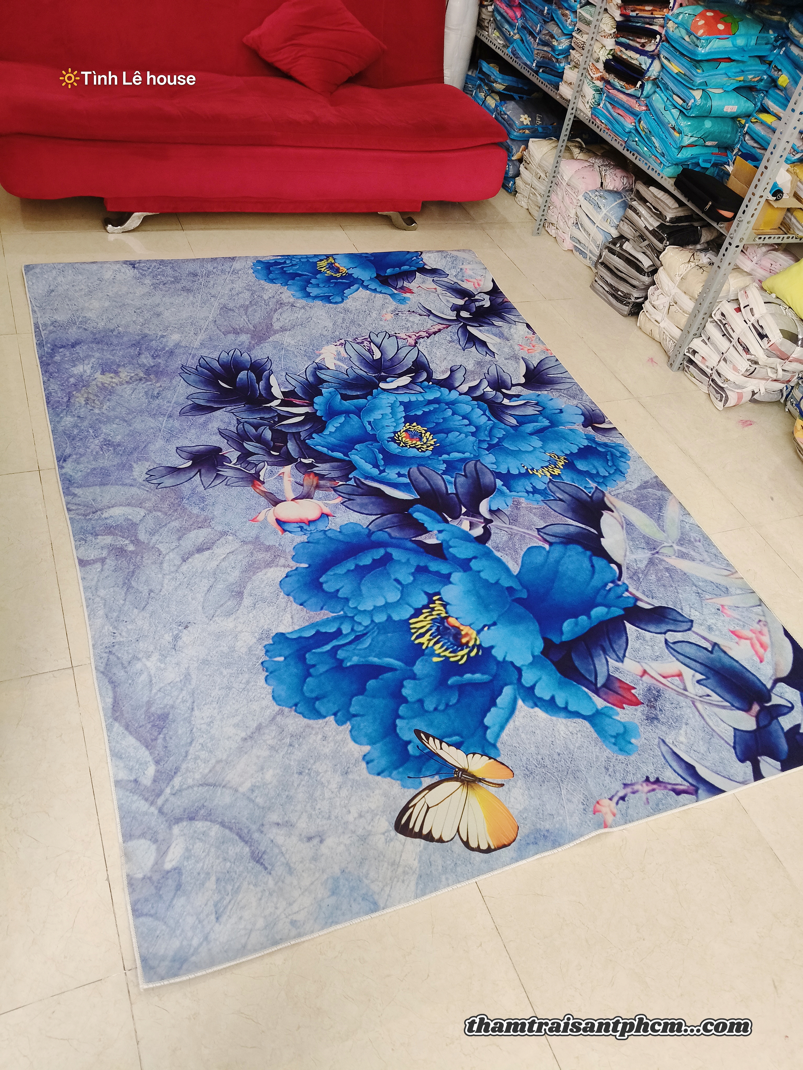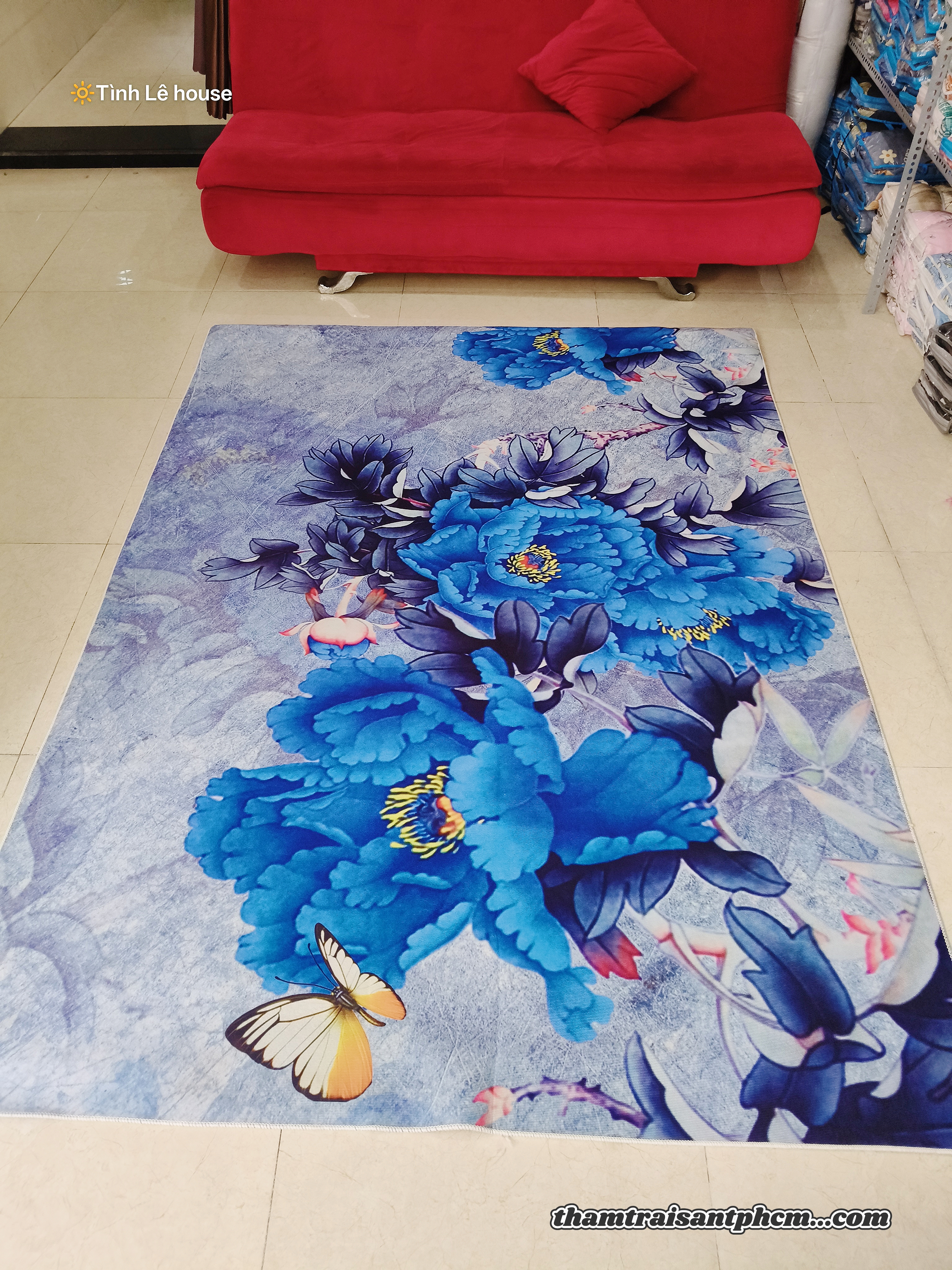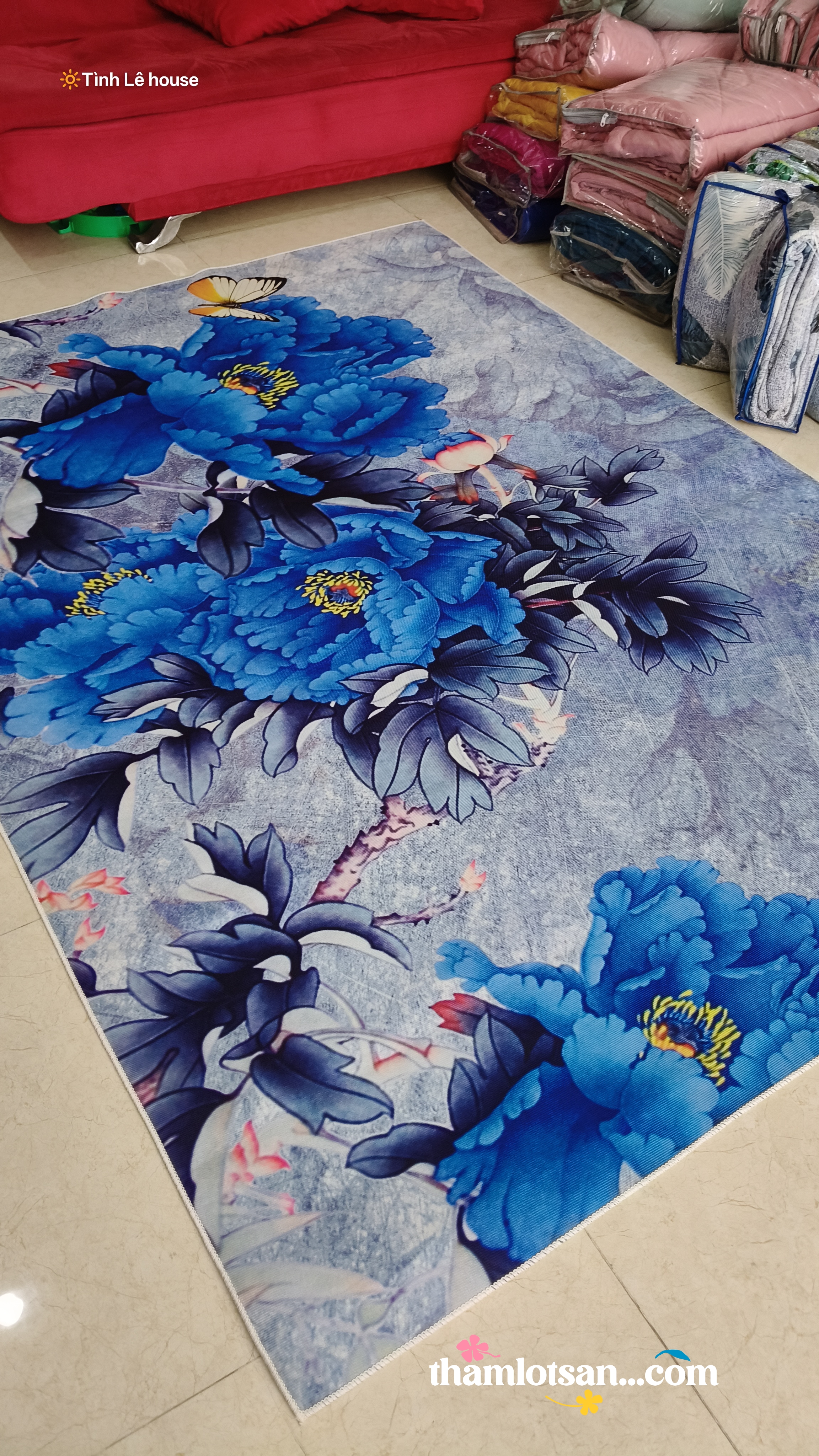 Thảm bali mẫu hoa xanh 1m6*2m3
